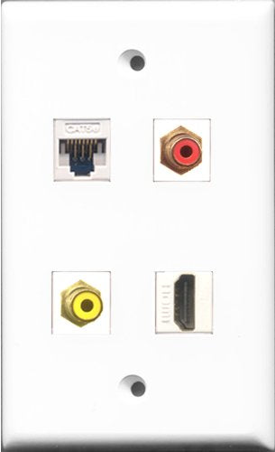 RiteAV 1 Port HDMI and 1 Port RCA Red and 1 Port RCA Yellow and 1 Port Cat5e Ethernet White Wall Plate