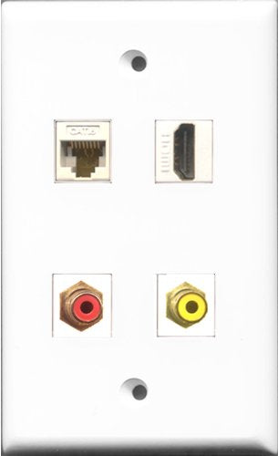 RiteAV 1 Port HDMI and 1 Port RCA Red and 1 Port RCA Yellow and 1 Port Cat6 Ethernet White Wall Plate