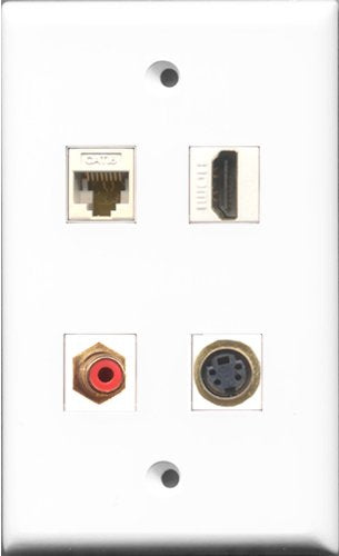 RiteAV 1 Port HDMI and 1 Port RCA Red and 1 Port S-Video and 1 Port Cat6 Ethernet White Wall Plate