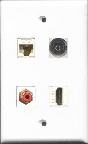 RiteAV 1 Port HDMI and 1 Port RCA Red and 1 Port Toslink and 1 Port Cat6 Ethernet White Wall Plate