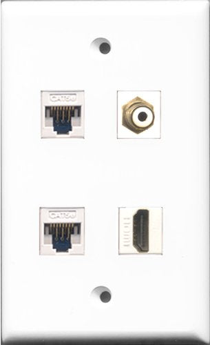 RiteAV 1 Port HDMI and 1 Port RCA White 2 Port Cat5e Ethernet White Wall Plate
