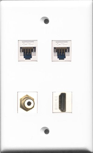 RiteAV - 1 Port HDMI and 1 Port RCA White 2 Port Cat5e Ethernet White Wall Plate