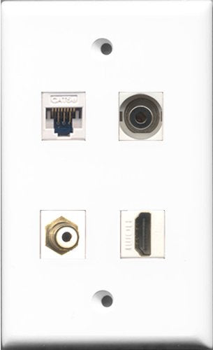 RiteAV - 1 Port HDMI and 1 Port RCA White and 1 Port 3.5mm and 1 Port Cat5e Ethernet White Wall Plate