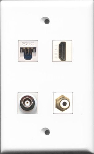 RiteAV - 1 Port HDMI and 1 Port RCA White and 1 Port BNC and 1 Port Cat5e Ethernet White Wall Plate