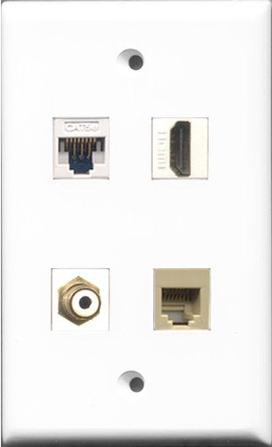 RiteAV - 1 Port HDMI and 1 Port RCA White and 1 Port Phone RJ11 RJ12 Beige and 1 Port Cat5e Ethernet White Wall Plate
