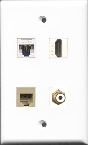 RiteAV - 1 Port HDMI and 1 Port RCA White and 1 Port Phone RJ11 RJ12 Beige and 1 Port Cat5e Ethernet White Wall Plate