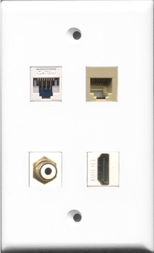 RiteAV 1 Port HDMI and 1 Port RCA White and 1 Port Phone RJ11 RJ12 Beige and 1 Port Cat5e Ethernet White Wall Plate