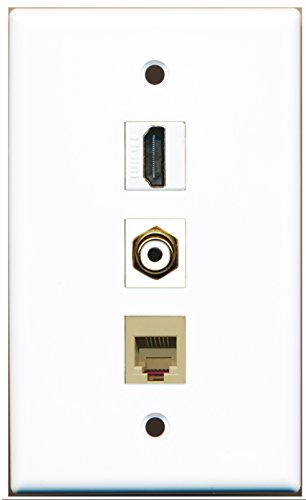 RiteAV - 1 Port HDMI and 1 Port RCA White and 1 Port Phone RJ11 RJ12 Beige Wall Plate