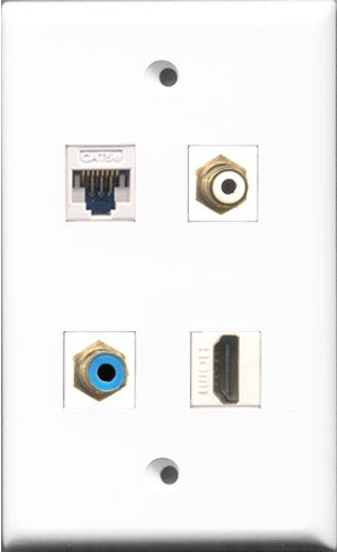 RiteAV 1 Port HDMI and 1 Port RCA White and 1 Port RCA Blue and 1 Port Cat5e Ethernet White Wall Plate