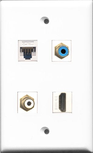 RiteAV 1 Port HDMI and 1 Port RCA White and 1 Port RCA Blue and 1 Port Cat5e Ethernet White Wall Plate