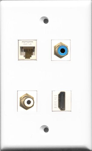 RiteAV 1 Port HDMI and 1 Port RCA White and 1 Port RCA Blue and 1 Port Cat6 Ethernet White Wall Plate
