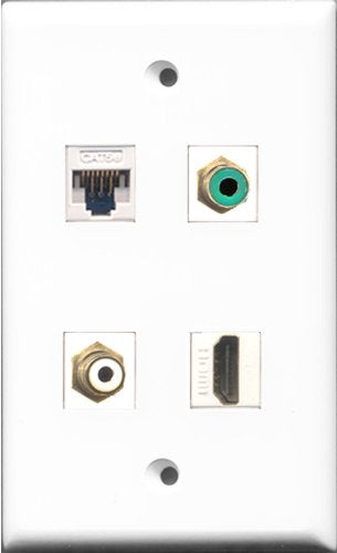 RiteAV 1 Port HDMI and 1 Port RCA White and 1 Port RCA Green and 1 Port Cat5e Ethernet White Wall Plate