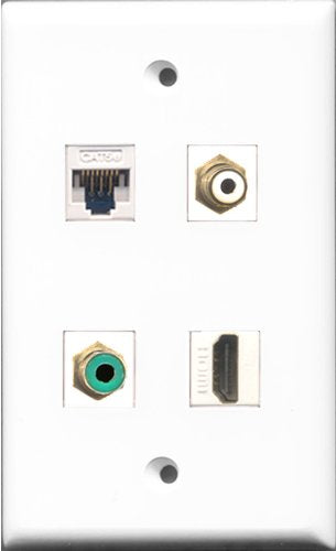 RiteAV 1 Port HDMI and 1 Port RCA White and 1 Port RCA Green and 1 Port Cat5e Ethernet White Wall Plate