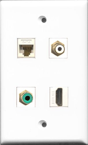 RiteAV 1 Port HDMI and 1 Port RCA White and 1 Port RCA Green and 1 Port Cat6 Ethernet White Wall Plate