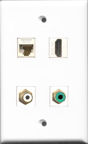 RiteAV 1 Port HDMI and 1 Port RCA White and 1 Port RCA Green and 1 Port Cat6 Ethernet White Wall Plate