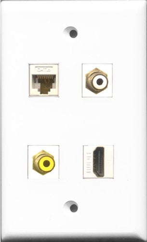 RiteAV - and 1 Port HDMI and 1 Port RCA White and 1 Port RCA Yellow and 1 Port Cat6 Ethernet White Wall Plate