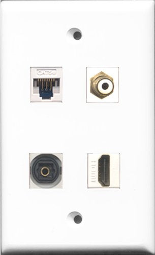 RiteAV 1 Port HDMI and 1 Port RCA White and 1 Port Toslink and 1 Port Cat5e Ethernet White Wall Plate