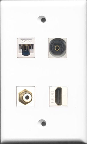 RiteAV 1 Port HDMI and 1 Port RCA White and 1 Port Toslink and 1 Port Cat5e Ethernet White Wall Plate
