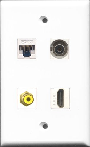 RiteAV - 1 Port HDMI and 1 Port RCA Yellow and 1 Port 3.5mm and 1 Port Cat5e Ethernet White Wall Plate