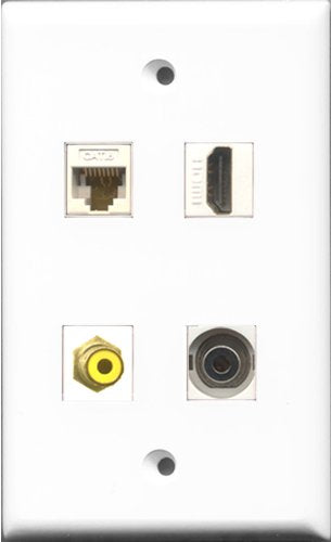 RiteAV 1 Port HDMI and 1 Port RCA Yellow and 1 Port 3.5mm and 1 Port Cat6 Ethernet White Wall Plate