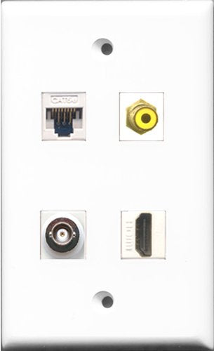 RiteAV 1 Port HDMI and 1 Port RCA Yellow and 1 Port BNC and 1 Port Cat5e Ethernet White Wall Plate