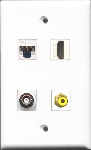 RiteAV - 1 Port HDMI and 1 Port RCA Yellow and 1 Port BNC and 1 Port Cat5e Ethernet White Wall Plate