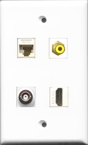 RiteAV 1 Port HDMI and 1 Port RCA Yellow and 1 Port BNC and 1 Port Cat6 Ethernet White Wall Plate