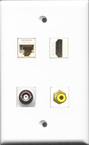 RiteAV 1 Port HDMI and 1 Port RCA Yellow and 1 Port BNC and 1 Port Cat6 Ethernet White Wall Plate