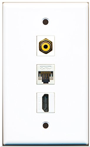 RiteAV - 1 Port HDMI and 1 Port RCA Yellow and 1 Port Cat5e Ethernet White Wall Plate
