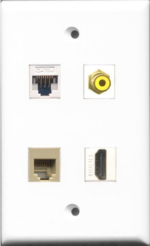 RiteAV - and 1 Port HDMI and 1 Port RCA Yellow and 1 Port Phone RJ11 RJ12 Beige and 1 Port Cat5e Ethernet White Wall Plate