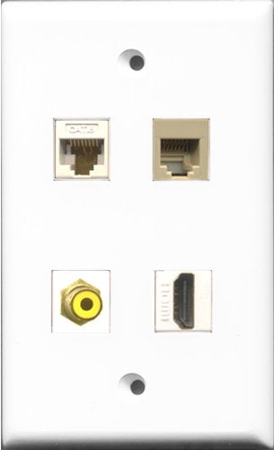 RiteAV 1 Port HDMI and 1 Port RCA Yellow and 1 Port Phone RJ11 RJ12 Beige and 1 Port Cat6 Ethernet White Wall Plate