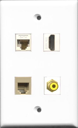 RiteAV 1 Port HDMI and 1 Port RCA Yellow and 1 Port Phone RJ11 RJ12 Beige and 1 Port Cat6 Ethernet White Wall Plate