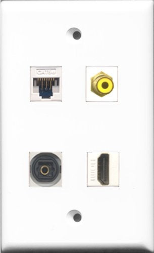 RiteAV 1 Port HDMI and 1 Port RCA Yellow and 1 Port Toslink and 1 Port Cat5e Ethernet White Wall Plate