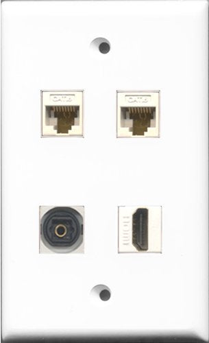 RiteAV 1 Port HDMI and 1 Port Toslink 2 Port Cat6 Ethernet White Wall Plate
