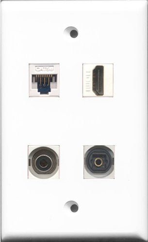 RiteAV - 1 Port HDMI and 1 Port Toslink and 1 Port 3.5mm and 1 Port Cat5e Ethernet White Wall Plate