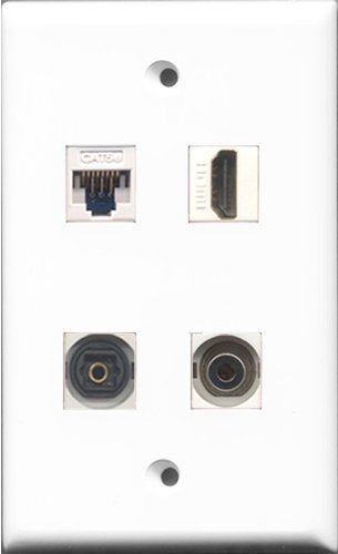 RiteAV - 1 Port HDMI and 1 Port Toslink and 1 Port 3.5mm and 1 Port Cat5e Ethernet White Wall Plate