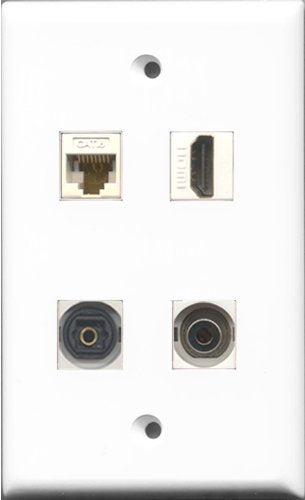 RiteAV 1 Port HDMI and 1 Port Toslink and 1 Port 3.5mm and 1 Port Cat6 Ethernet White Wall Plate