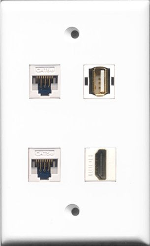 RiteAV 1 Port HDMI and 1 Port USB A-A 2 Port Cat5e Ethernet White Wall Plate