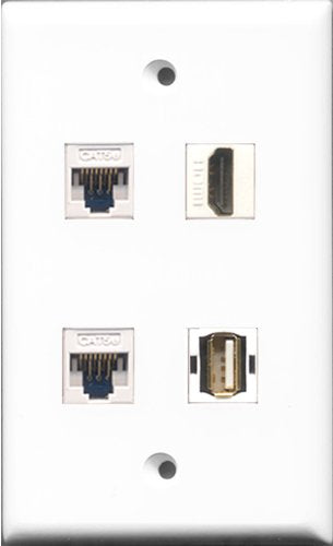 RiteAV - 1 Port HDMI and 1 Port USB A-A 2 Port Cat5e Ethernet White Wall Plate