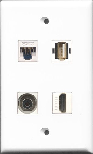 RiteAV 1 Port HDMI and 1 Port USB A-A and 1 Port 3.5mm and 1 Port Cat5e Ethernet White Wall Plate