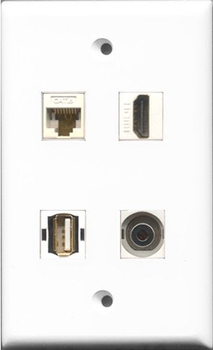 RiteAV 1 Port HDMI and 1 Port USB A-A and 1 Port 3.5mm and 1 Port Cat6 Ethernet White Wall Plate