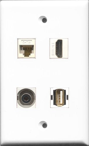 RiteAV - and 1 Port HDMI and 1 Port USB A-A F/F and 1 Port 3.5mm and 1 Port Cat6 Ethernet White Wall Plate