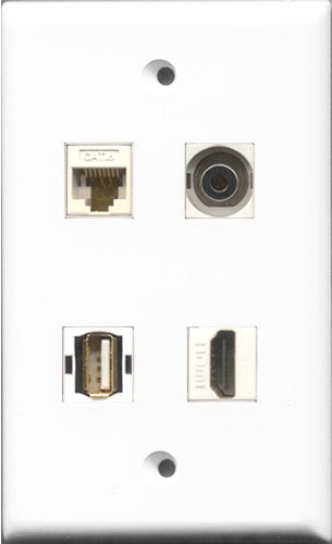RiteAV 1 Port HDMI and 1 Port USB A-A and 1 Port 3.5mm and 1 Port Cat6 Ethernet White Wall Plate
