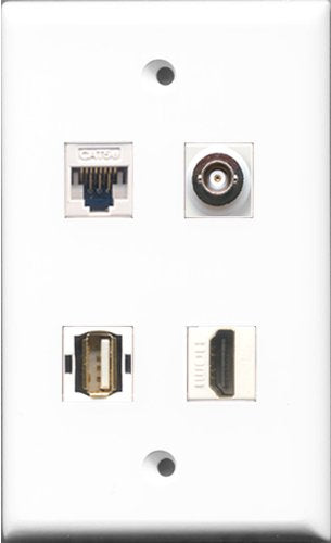 RiteAV - 1 Port HDMI and 1 Port USB A-A and 1 Port BNC and 1 Port Cat5e Ethernet White Wall Plate
