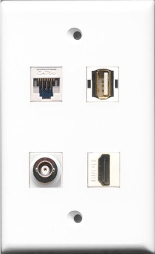 RiteAV 1 Port HDMI and 1 Port USB A-A and 1 Port BNC and 1 Port Cat5e Ethernet White Wall Plate