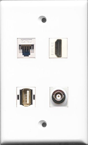 RiteAV - and 1 Port HDMI and 1 Port USB A-A F/F and 1 Port BNC and 1 Port Cat5e Ethernet White Wall Plate