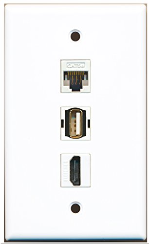 RiteAV - 1 Port HDMI and 1 Port USB A-A and 1 Port Cat5e Ethernet White Wall Plate