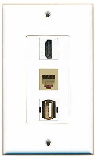 RiteAV - 1 Port HDMI and 1 Port USB A-A and 1 Port Phone RJ11 RJ12 Beige Decorative Wall Plate Decorative
