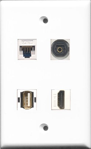 RiteAV 1 Port HDMI and 1 Port USB A-A and 1 Port Toslink and 1 Port Cat5e Ethernet White Wall Plate