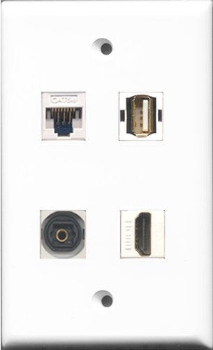 RiteAV 1 Port HDMI and 1 Port USB A-A and 1 Port Toslink and 1 Port Cat5e Ethernet White Wall Plate